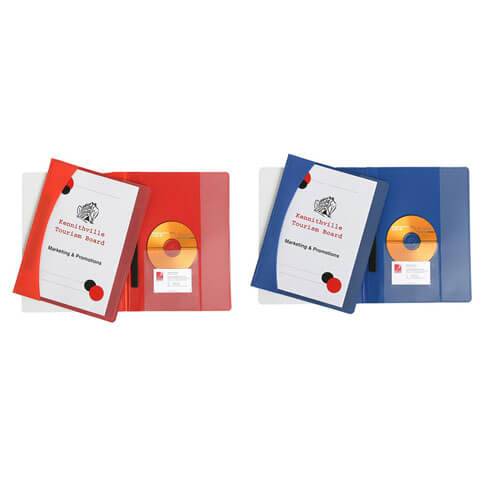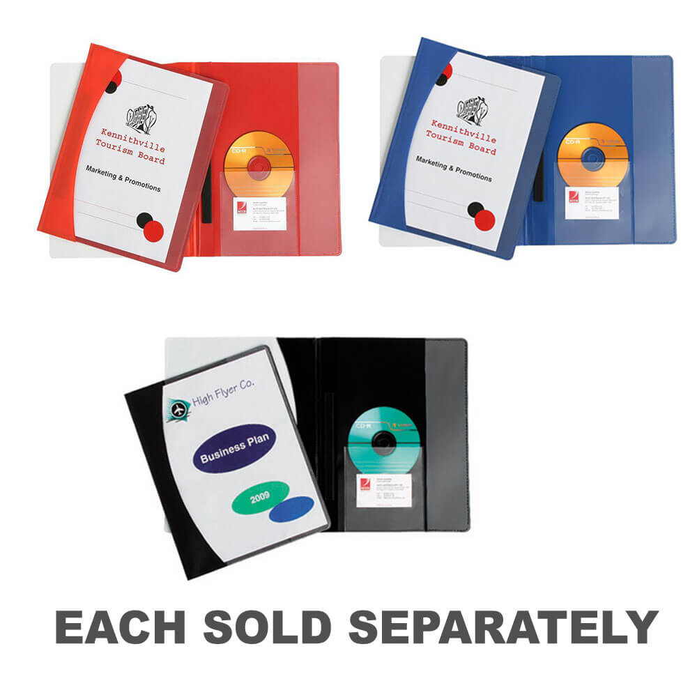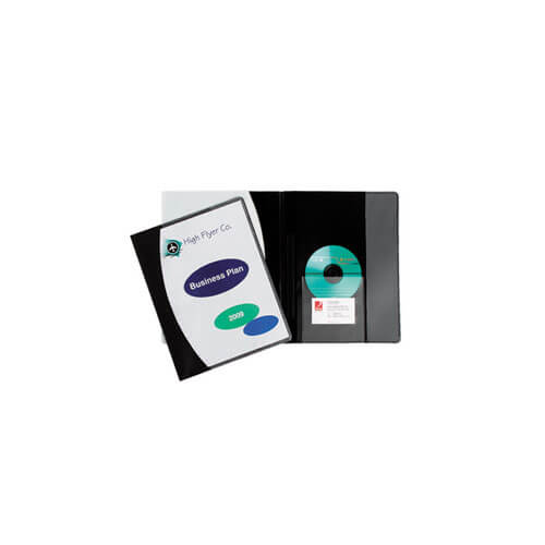• Semi rigid with a clear front cover. Inside back cover with vertical pocket, CD holder and business card holder.